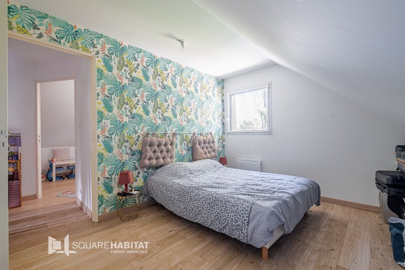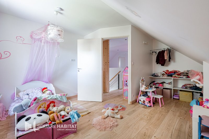 Au rez-de-chaussée, vous accéderez directement à une pièce de vie spacieuse, une cuisine ouverte équipée et aménagée, un cellier, des toilettes, un bureau ainsi qu'une suite parentale avec salle d'eau.