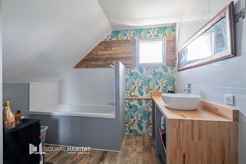 À l'étage, un palier dessert trois chambres, une salle de bains et des toilettes.