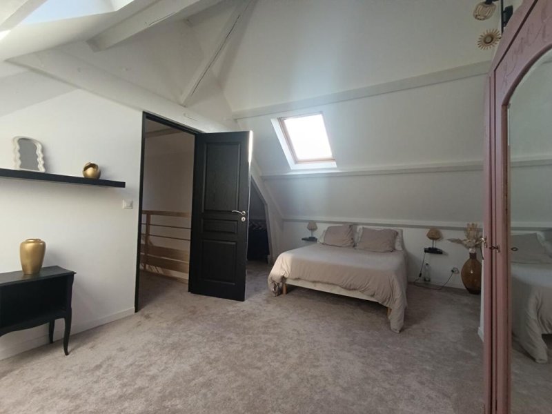 A l'étage, le palier dessert trois chambres dont une très grande, une salle de bains avec baignoire balnéo et un wc.