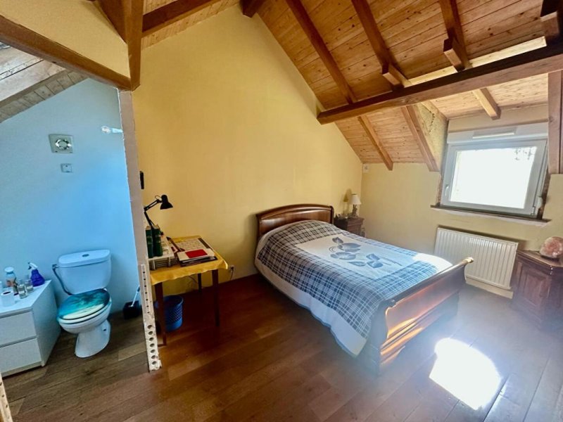 A l'étage , deux chambres dont une avec WC, une grande mezzanine (+ 28m²), où l'on peux rajouter une chambre, un espace bureau, dressing ou une salle d'eau.