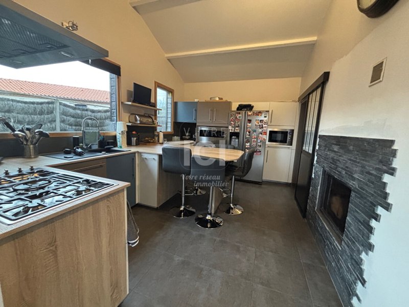PORNIC - EN HAMEAU et au calme, à 5 MN du Vieux Port et accès facile Nantes et Saint Nazaire, MAISON ancienne rénovée à VENDRE sur 1000 m2 de terrain avec maison et annexe de 380 m2 au total - Grand salon séjour avec cheminée double face avec cuisine aménagée et équipée - autre grande pièce avec coin cuisine - 2 chambres + bureau au rdc - 3 chambres à l'étage - 2 chambres d'hôte indépendantes avec salle d'eau et WC -