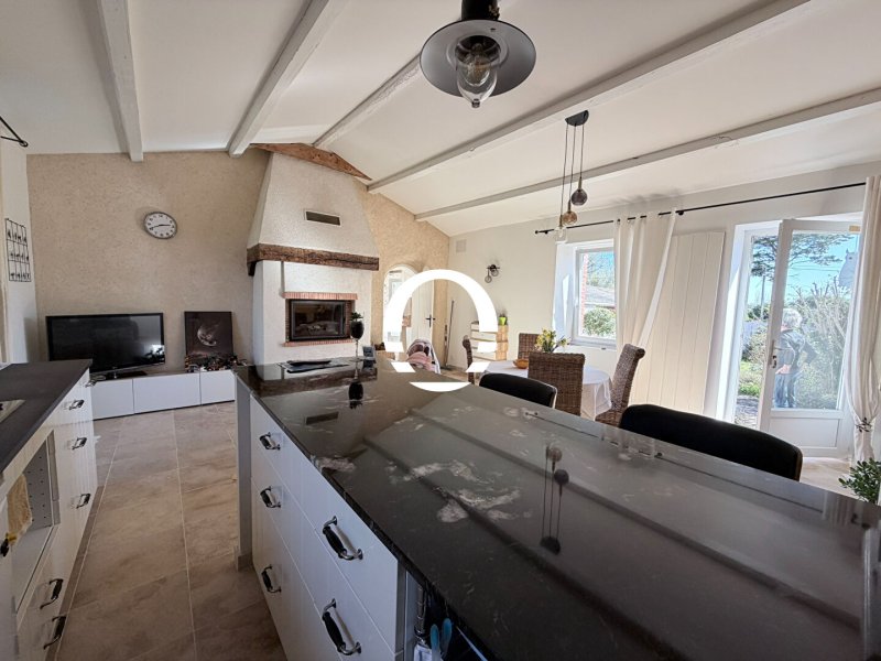 Charme de la pierre pour cette maison d'habitation de plain pied d'environ 60m2 entièrement rénovée comprenant : salon séjour cuisine avec cheminée à insert, une chambre un bureau, salle d'eau avec WC. Terrasse bois avec tonnelle, dépendances, 3 puits à usage d'arrosage dont un avec pompe.