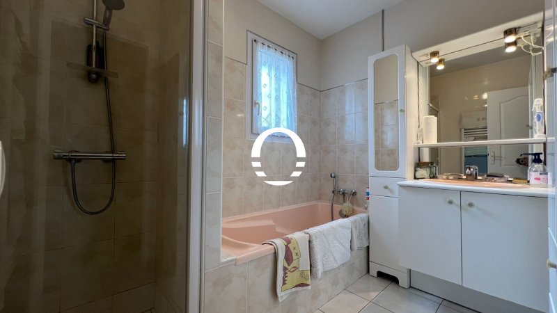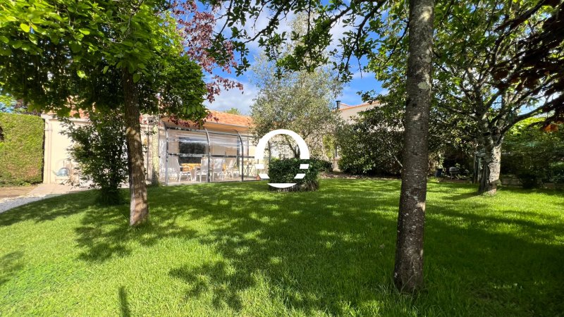 Un jardin joliment arboré et entièrement clos d'environ 656 m2 avec deux portails dont un motorisé et plusieurs places de stationnement complètent le bien.