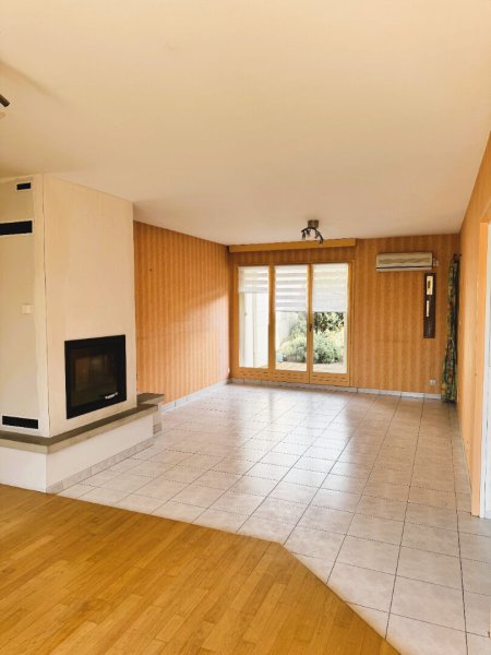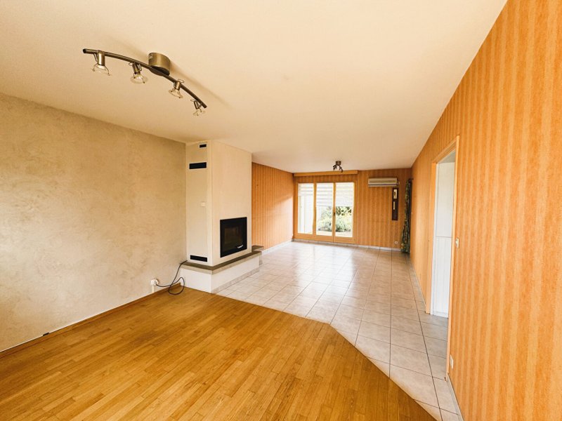 Belle entrée sur salon et séjour traversant avec insert à granulés de 2022, cuisine indépendante aménagée, double terrasse de chaque côté de la maison, garage avec cellier. Les trois chambres sur parquet, d'une belle superficie, se situent à l'étage, dont une de 17m² environ avec balcon. Chacune des chambres dispose d'un espace de rangement. Le palier dessert également une salle d'eau et un WC séparé.