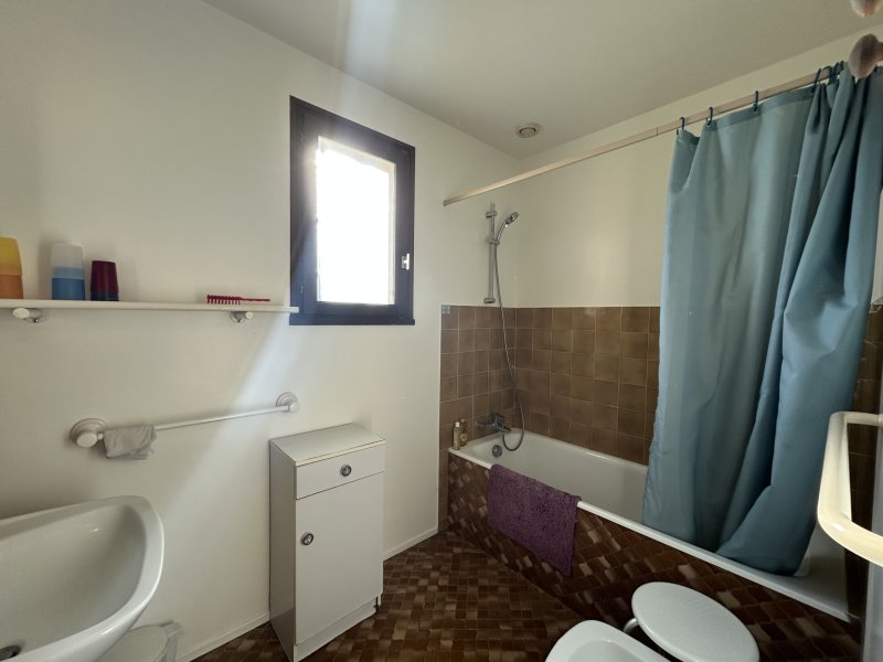 Sur une belle parcelle de terrain, à deux pas des plages de la Gilardière et du Portmain, Maison bâtie en 1979 disposant d'un grand séjour avec cheminée, cuisine, Trois chambres, salle de bains, wc, cabinet de toilette. Terrasse exposée Sud. Pas de vis à vis. Cadre paisible. Idéal projet de rénovation. Emplacement de choix. Agence Sainte Marie