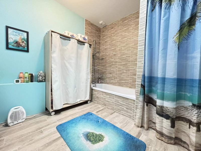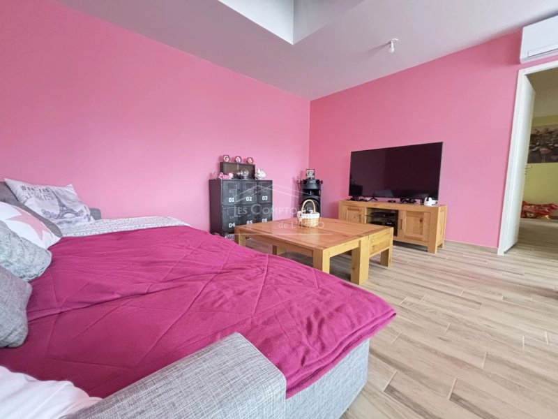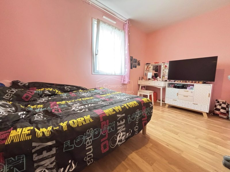 Une belle pièce de vie lumineuse d'environ 42m² composée d'une cuisine ouverte sur une salle à manger et un salon, une buanderie, des toilettes séparées avec lave mains, un dégagement desservant 3 chambres et une salle de bains avec douche et toilettes.