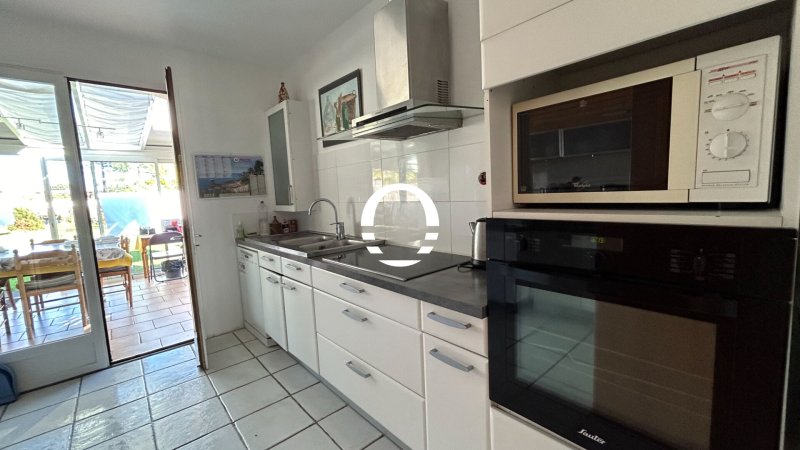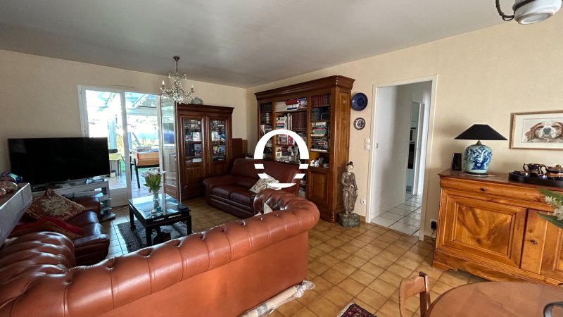 Commerces à pied pour cette maison sur sous sol, Elle est composée : d'une entrée salon séjour avec cheminée ouvrant sur une véranda, cuisine aménagée et équipée, dégagement, 3 chambres, une salle de bains, wc. Au sous sol, cave, bureau, annexe, garage.