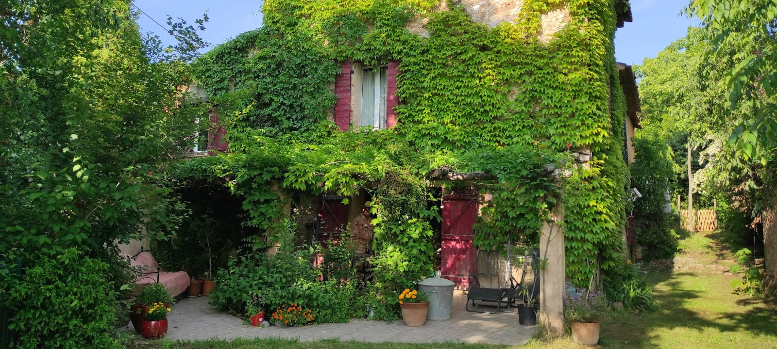 Le jardin est entièrement clos avec un abri de jardin.