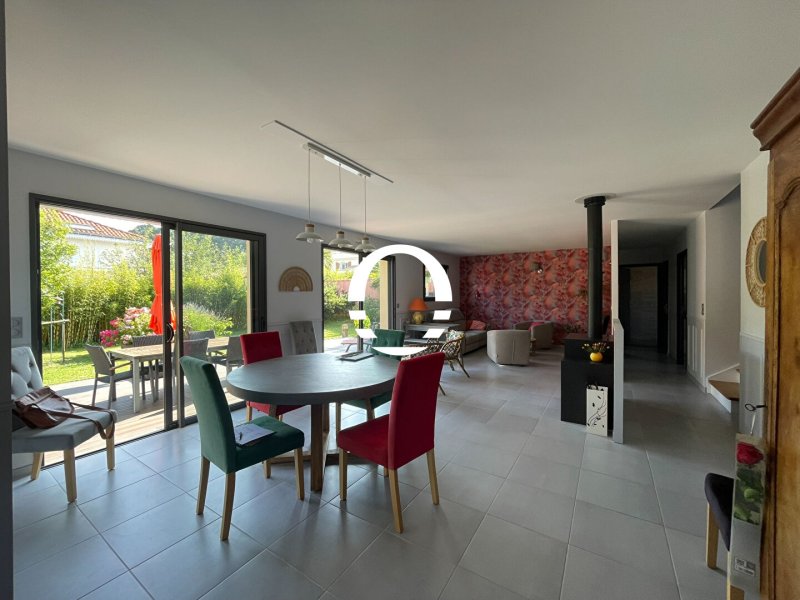 De plain-pied : une entrée, une cuisine aménagée et et équipée, un salon-séjour avec poêle à bois, accès direct à une terrasse et un jardin exposés plein SUD. Vous disposerez également d'une suite parentale avec salle d'eau et dressing, un WC indépendant, une buanderie, une arrière cuisine.