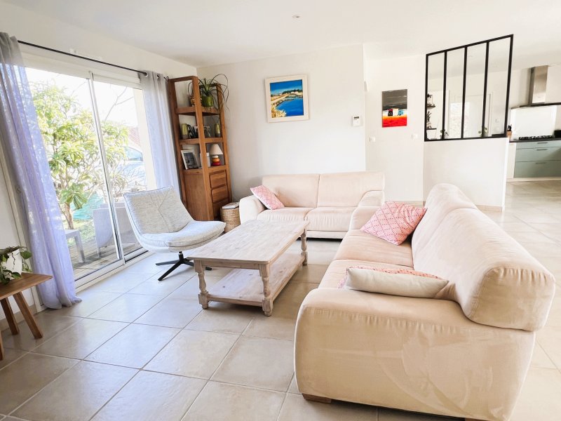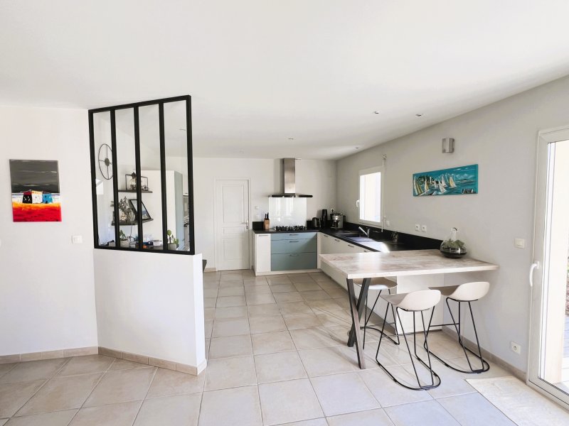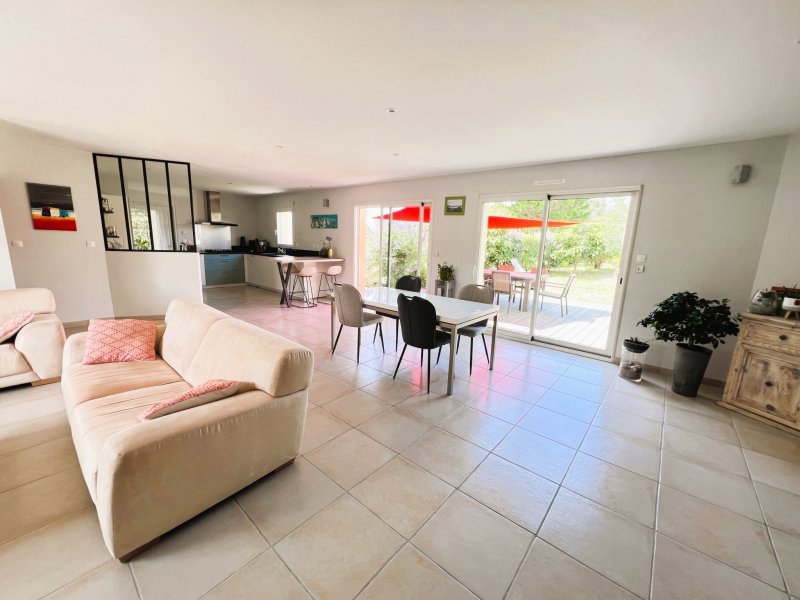 L'AGENCE DU CHAUDRON vous propose : A Pornic, à quelques minutes du sentier côtier et de la plage, en impasse au calme, maison de 2004 offrant 142m2 environ. LUMINEUSE et de PLAIN-PIED cette maison avec vue aérée sur son jardin va vous séduire. Entrée, pièce de vie de 64m2 avec cuisine ouverte aménagée et équipée, poêle à bois, accès terrasse sud-ouest, bureau, wc. Espace nuit offrant trois chambres avec placard , wc indépendant, salle de bains. Buanderie, un espace nuit avec salle d'eau, garage. Grand jardin plein de charme, arboré et clos d'environ 1129 m2. Faîtes nous confiance !