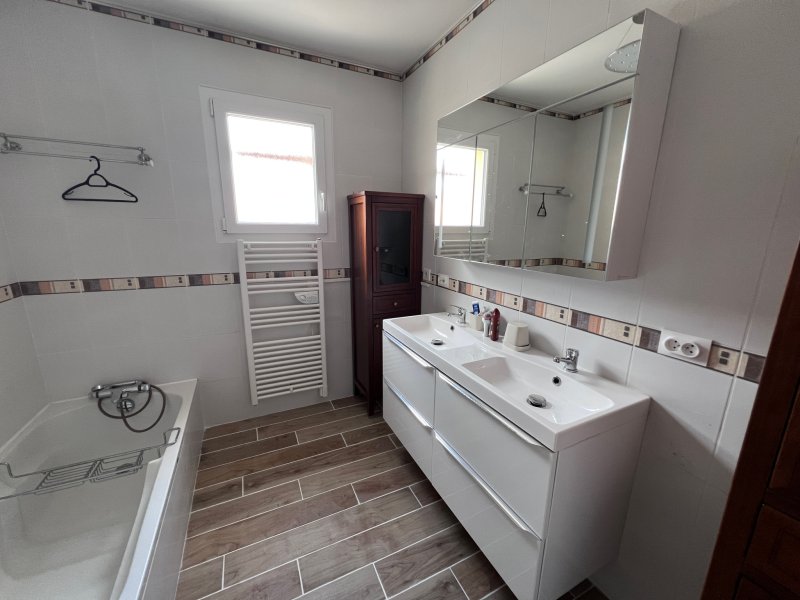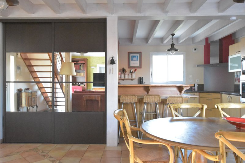 L'AGENCE DU CHAUDRON vous propose en exclusivité : A 10 minutes du centre de PORNIC, dans un quartier résidentiel calme, découvrez cette jolie maison de 2006 comprenant au rez de chaussée : une entrée avec placards et wc, une pièce de vie avec cuisine équipée et aménagée, arrière cuisine, un espace nuit composé de deux chambres avec placards, un bureau, une salle de bains avec douche. A l'étage une mezzanine desservant deux chambres, une salle d'eau et wc indépendant. Grand garage d'environ 39m2, préau et beau cabanon de jardin. Le tout sur une belle parcelle clos, sans vis à vis, sécurisée d'environ 1140 m2. Pour toute demande de renseignement(s), n'hésitez pas à contacter l'Agence du Chaudron au 02.44.06.66.44 Faîtes nous confiance !
