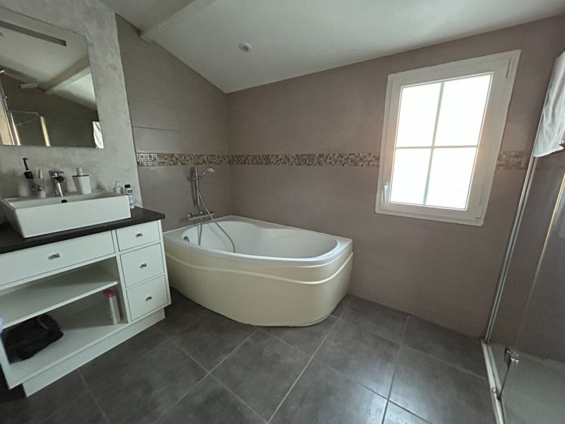 A l'étage : deux chambres, salle de bains avec douche et baignoire et lingerie.