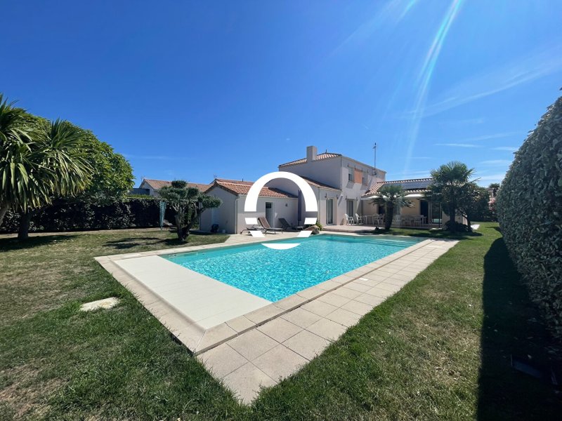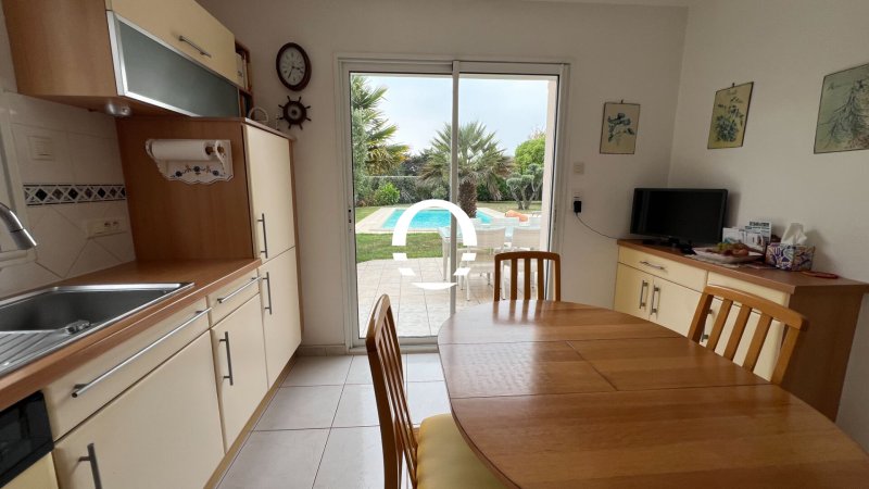 A 10 minutes à pied du bourg de Sainte Marie et de ses plages, spacieuse contemporaine parfaitement entretenue avec piscine chauffée et sécurisée.