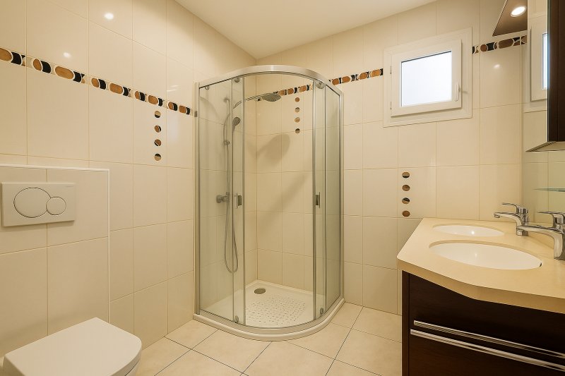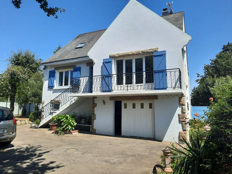 De style néo breton, elle se compose au rez-de-chaussée d'un grand garage (possibilité de garer 2 à 3 voitures), cave et lingerie.