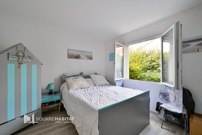 Elle se compose en rez de chaussée d'un espace de vie avec double exposition donnant sur une terrasse et un jardin entièrement clos, d'une cuisine ouverte aménagée et équipée, d'une chambre avec salle d'eau, d'un WC séparé et d'un garage attenant.