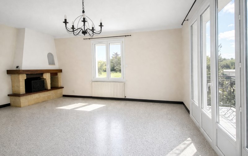 À l'étage, une agréable pièce de vie exposée plein sud, agrémentée d'un coin cheminée, offre un cadre lumineux et convivial. La cuisine ouverte, aménagée, complète cet espace. Deux chambres avec placards, ainsi qu'une salle d'eau avec WC viennent parfaire ce niveau.