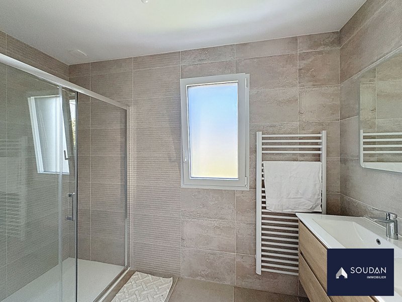 Maison neuve de 174,6 m2 habitable (135,71 en carrez), située au calme d'une impasse, à 800 mètres de la plage de Bonne Source et 5 minutes à pied de l'école Sainte Germaine.