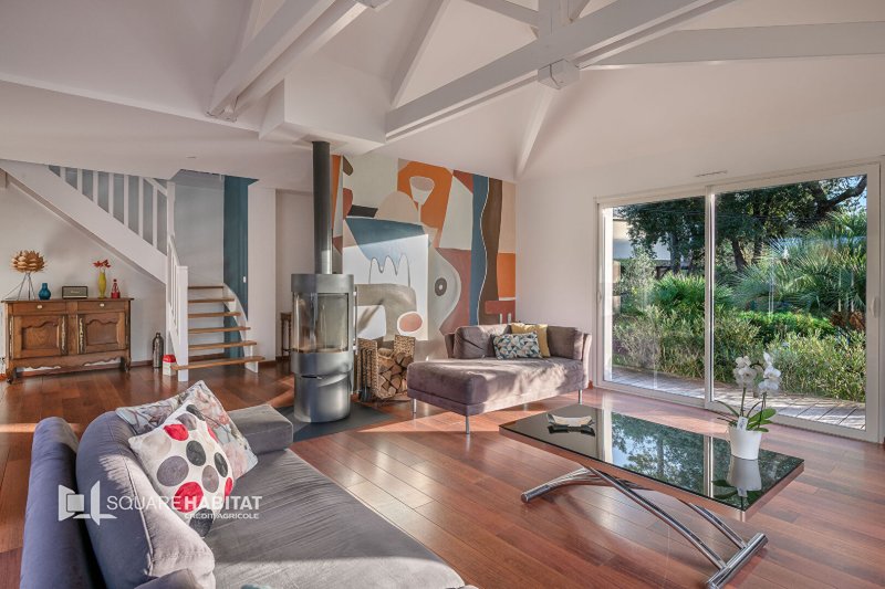 Nichée dans un écrin de verdure, au coeur d'un secteur prisé; cette maison d'architecte construite en 2006, offre un cadre de vie exceptionnel, alliant calme, intimité et proximité immédiate de la plage.