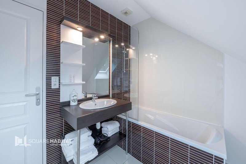 À seulement 500 mètres de la plage et 900 mètres des commerces, découvrez cette charmante maison contemporaine des années 2000 d'environ 115 m² au sol, alliant confort, espace et tranquillité.