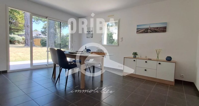 Au calme, Plage 650 m, commerces 1km, impasse au milieu des pins, bel environnement, maison comprenant : entrée avec placards, salon séjour ouvert sur le jardin, cuisine aménagée équipée, WC, chambre, placards, SDE. A l'étage : 3 chambres avec placards, salle de bains, WC. Garage. Beau Jardin ouvert sur le côté. Belles prestations (plancher chauffant, volets électrique, porte garage électrique). Coup de cœur. +33 6 67 47 53 79 - +33 2 40 61 30 40