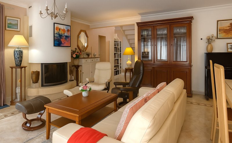 Elle vous accueille dans une belle pièce de vie avec cheminée d'environ 40 m² ouverte sur une cuisine A/E de qualité . Vie de plain pied avec une chambre, un dressing et salle de bains avec WC (suite parentale).