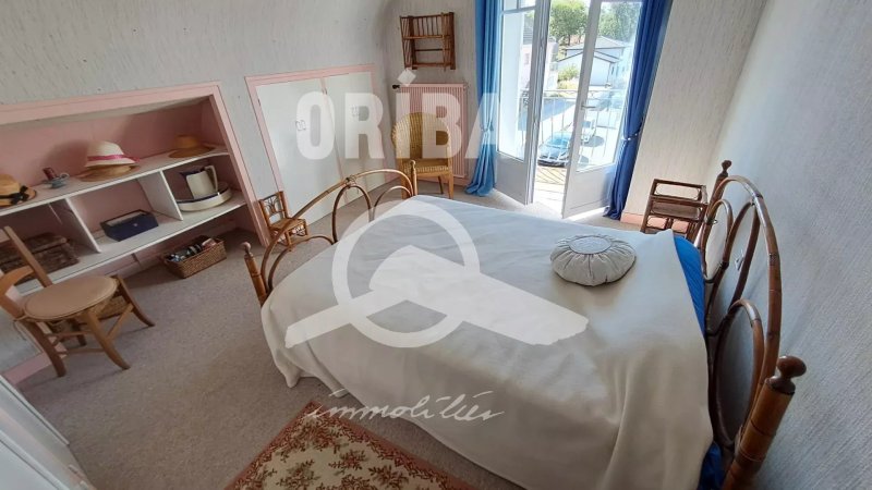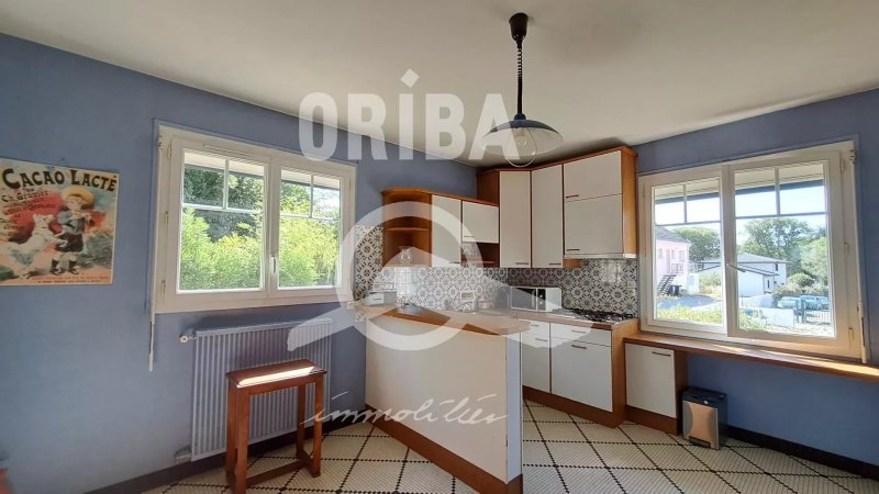 Entrée, salon séjour avec cheminée, cuisine équipée, 2 chambres, salle d'eau et toilette. À l'étage un palier distribue 2 grandes chambres, une salle d'eau avec toilette. 2 grands greniers sur dalle béton pouvant être aménagés. Au sous-sol, garage, buanderie et chaufferie. belle exposition sud, terrasse et un jardin permettant de profiter pleinement de l'extérieur.