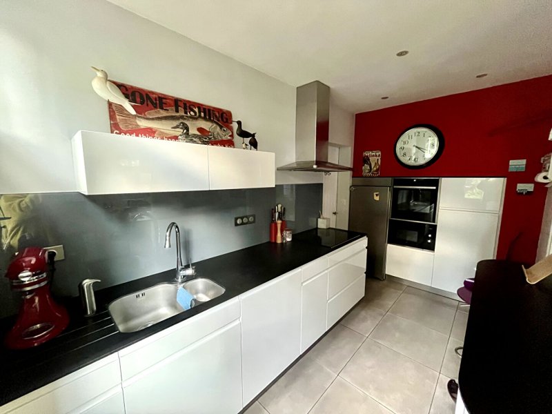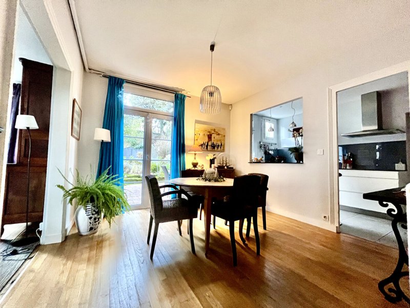D'une surface habitable d'environ 147 m² (potentiel 200 m2), cette maison parfaitement entretenue séduit dès l'entrée par sa luminosité et sa fonctionnalité. Elle offre de plain-pied sur le jardin, salon sur parquet (cheminée), séjour, et cuisine aménagée, buanderie, garage, bureau et SDE.