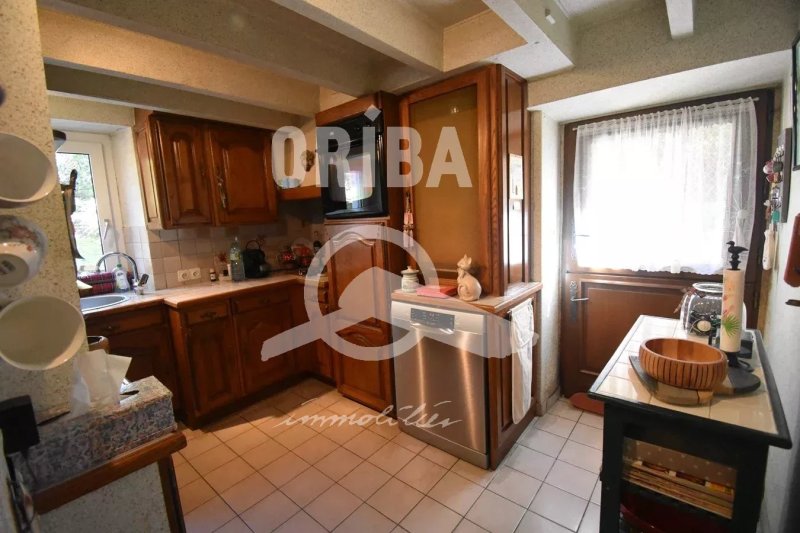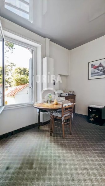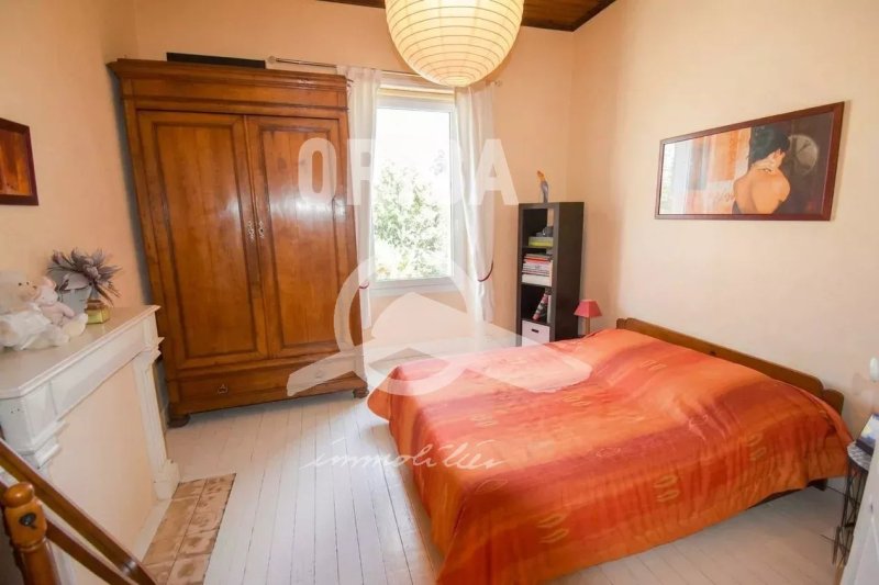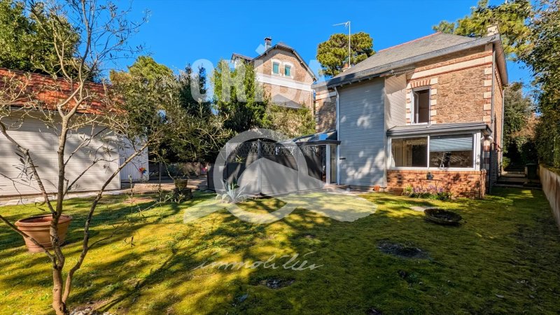EXCLUSIVITE. Jolie villa en pierre de la fin du 19ème sur jardin clos de 500 m2. Bel environnement. Rez-de-jardin : salle à manger avec cheminée ouvrant sur véranda 1, dégagement, cuisine E & A, chambre avec grand placard ouvrant sur véranda 2, salle d'eau avec wc. Rez-de-chaussée surélevé : couloir desservant salon/bibliothèque, 2 chambres, chambre/bureau, salle d'eau wc. Annexe : Garage 24 m2 et lingerie 17 m2.