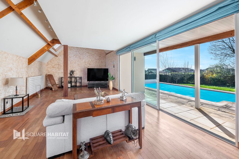 A l'extérieur vous profiterez également de la piscine et de la terrasse idéalement exposée, d'un second garage et de nombreux stationnement extérieurs.