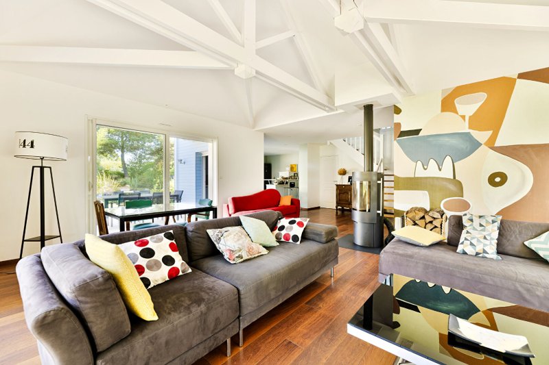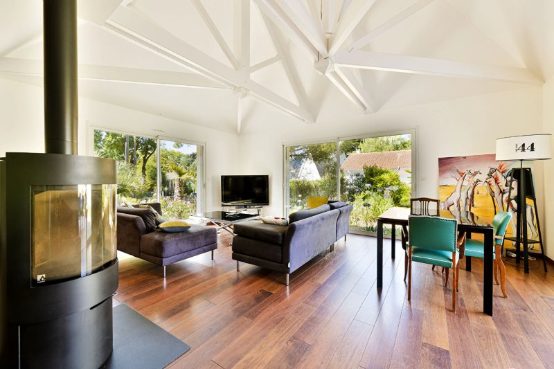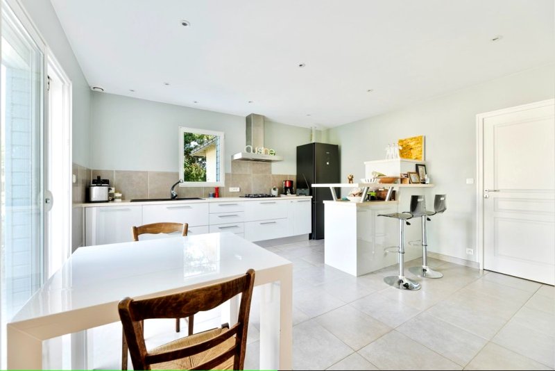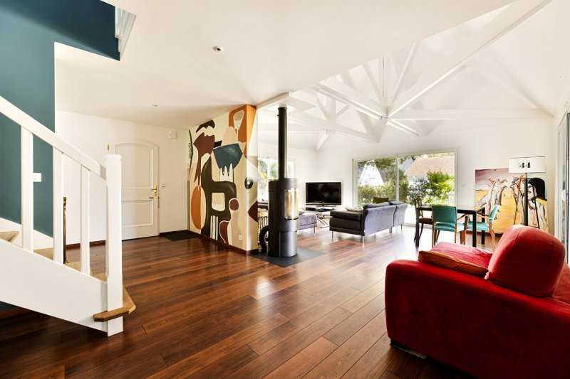 Édifiée sur une belle parcelle arborée de plus de 1 000 m², cette propriété se distingue par ses volumes généreux, sa luminosité et la qualité de ses prestations. Elle offre une très belle entrée, salon chaleureux avec poêle à bois, ouvert sur le jardin, une cuisine aménagée et équipée, une buanderie attenante, une spacieuse suite parentale de plain-pied avec salle de bains plus douche, WC.