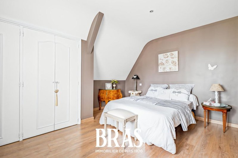 L'étage accueille une élégante suite parentale disposant de sa salle de bains privative, ainsi que deux chambres et une salle de bains supplémentaires, parfaitement adaptées à une vie de famille ou à la réception d'invités.