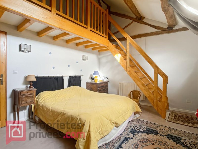 - A l'étage : un palier distribuant d'un côté une chambre avec mezzanine au dessus, une salle d'eau, un wc, de l'autre côté, deux chambres dont une avec mezzanine, une salle d'eau, un wc.
