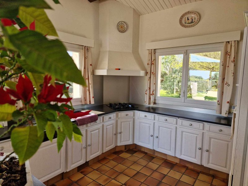 L'Agence Préfaillaise vous propose dans le Quartier de la vallée de Port Meleu, sur un très beau terrain arboré de 2300m2 environ, maison de 240m2 habitables et proposant : Un hall d'entrée ouvrant sur la très belle pièce de vie de 70m2 avec plafond cathédrale, poutres et cheminée avec foyer fermé ( 19 kw ), cuisine ouverte et équipée, arrière cuisine., wc ind. Dégagement menant à une grande chambre avec salle d'eau. Du séjour, couloir équipé de placards donnant accès à une autre grande chambre de 15m2 avec sortie sur terrasse et salle d'eau/wc. Plus loin, APPARTEMENT T2 avec accès in/out, séjour de 17m2, cuisine,1 chambre, salle d'eau et wc. A l'étage, palier de 7m2 desservant 2 chambres + salle d'eau/wc ainsi qu'une chambre de 15m2 avec sa salle d'eau/wc et donnant sur une terrasse/solarium de 11m2 environ avec vue mer. Garage de 42m2 avec préau 25m2. Local technique, cave, 2 ballons d'eau chaude par énergie solaire, alarme Faîtes nous confiance !
