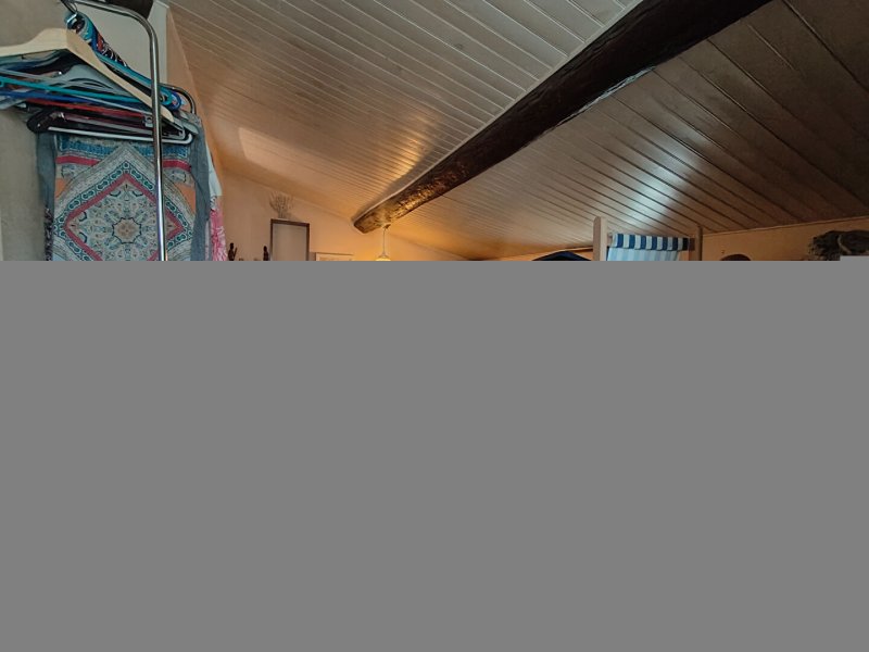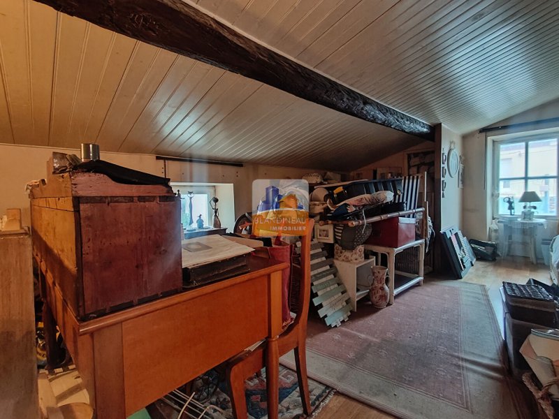 - une grande chambre mansardée avec un espace bureau