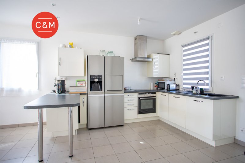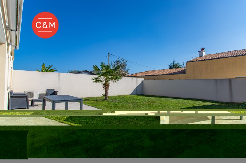 REZE OCEANE - Située au calme, au sein d'un quartier familial et verdoyant, à deux pas des transports, des commerces et des écoles, cette maison de plain-pied réalisé en 2015 aux normes PMR, se compose d'un séjour avec cuisine équipée donnant sur une terrasse et un jardin exposé Sud, quatre chambres avec placards, une pièce d'eau avec douche et baignoire, un wc et une lingerie.