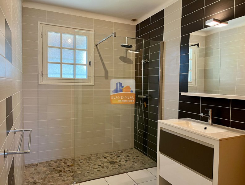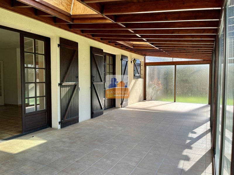D'une surface de 111 m² habitables, elle se compose d'une grande entrée, un salon séjour de 35 m², ouvert sur une véranda de 30 m² qui vient prolonger cet espace de vie. On retrouve aussi une cuisine indépendante aménagée et équipée de 15 m² avec un accès sur le cellier et le garage.