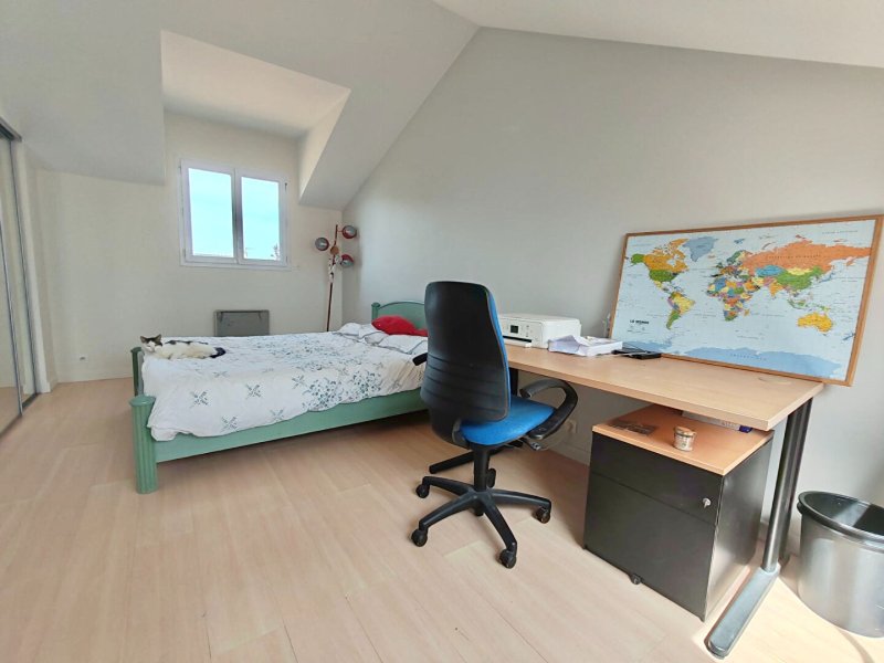 À l'étage, vous découvrirez trois chambres, une salle de d'eau et un wc, ainsi qu'une mezzanine offrant un espace supplémentaire pouvant servir de bureau ou d'espace détente ; ainsi q'un débarras.