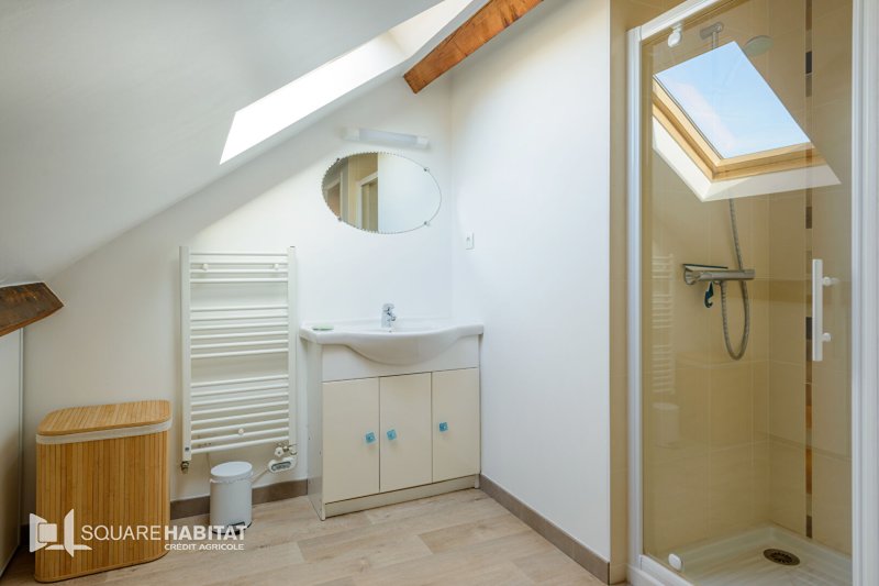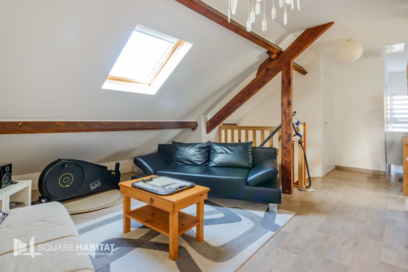 A l'étage , cuisine aménagée et équipée, mezzanine/salon, 2 chambres, salle d'eau, WC.