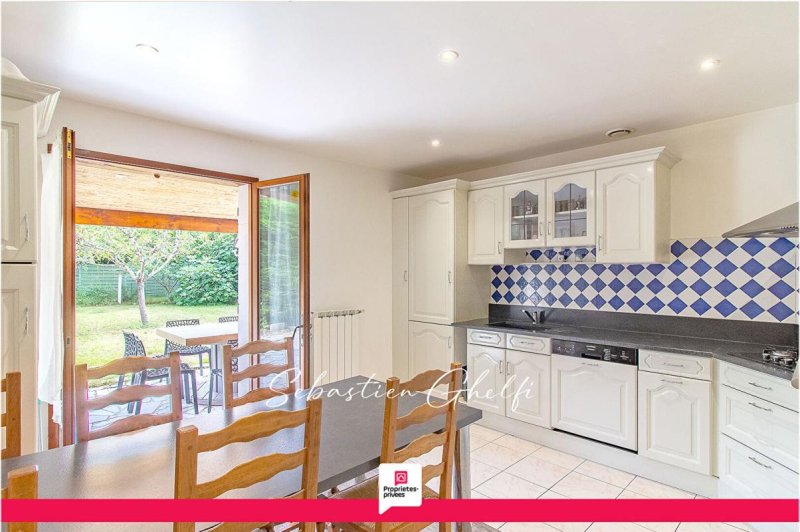 comprenant: entrée, salon séjour, cuisine aménagée, 4 chambres, salle d'eau avec douche à l'italienne, wc, dépendance avec coin cuisine et une grande pièce, terrasse sur belle parcelle de 670 m².