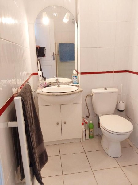 RDC : entrée sur cuisine salle à manger 24m2 (ou salon car seconde porte), salon : 28 m2, chambre (11m2) avec salle d'eau wc (4m2). Etage : une chambre avec salle d'eau privative (14m2).
