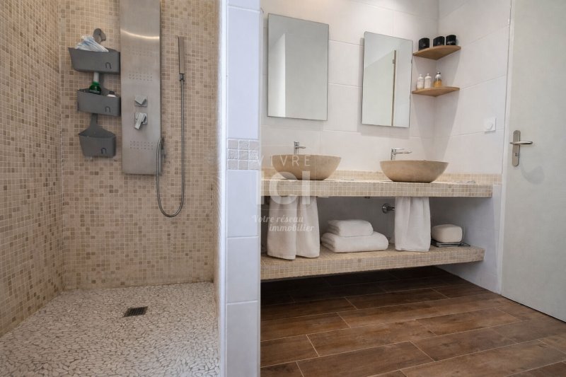 La partie nuit se compose de 4 chambres spacieuses, dont une suite parentale d'environ 15 m² avec douche et meuble vasque, ainsi qu'une seconde salle de bains comprenant baignoire et douche italienne et un WC indépendant.
