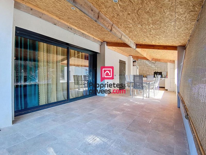 A l'extérieur, profitez d'une terrasse couverte et carrelée de 37 m² donnant sur une piscine, idéale pour les moments de détente en famille.