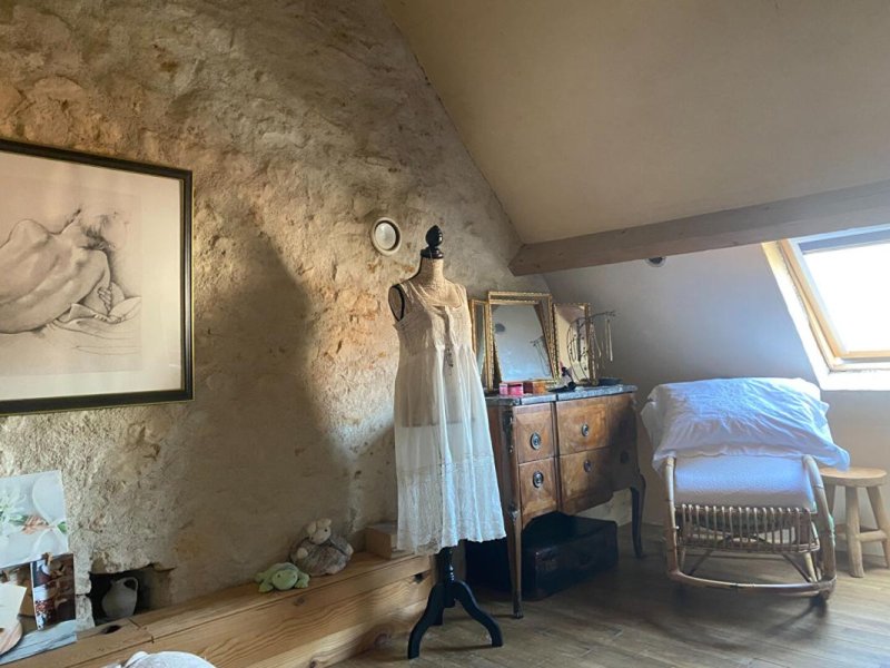Situé dans une rue calme , maison atypique en pierre de 79 m² comprenant : une cuisine aménagée , salon avec insert .Au rez de jardin , 2 chambres , wc et point d'eau . A l'étage une chambre avec salle d'eau wc et dressing .