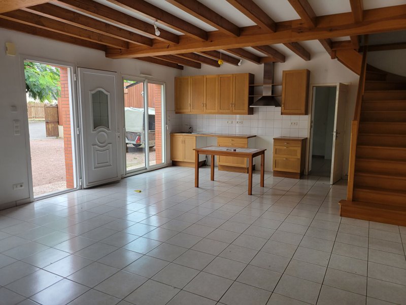 Maison proche des commodités comprenant au rez de chaussée une pièce de vie (salon-séjour-cuisine-entrée) de 50m²,une salle d'eau, un wc et un garage attenant avec espace lingerie. A l'étage quatre chambres, une salle de bain et un wc. Une cour complète ce bien.