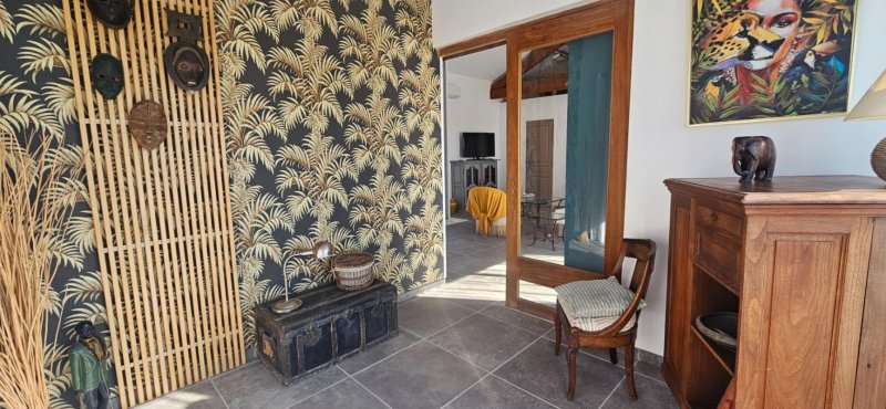 A l'étage : Deux autres chambres, une grande pièce à vivre lumineuse avec un salon cathédrale, un toit terrasse.