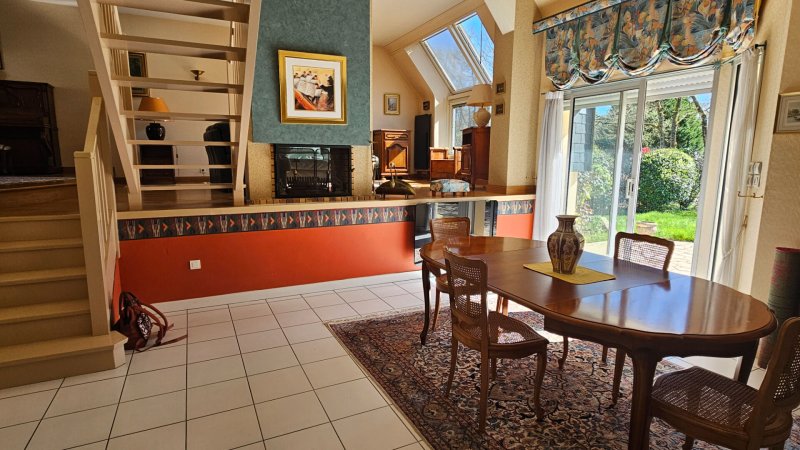Située dans un d'un quartier résidentiel de Sautron, cette maison contemporaine construite en 1992 saura vous séduire par son architecture en demi-niveaux et ses volumes agréables.