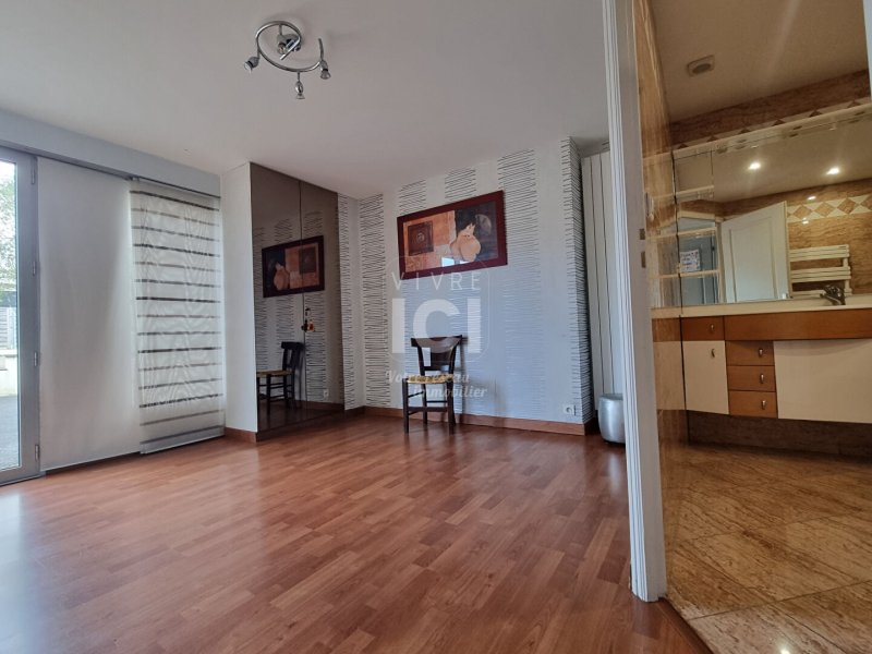 Le rez-de-chaussée offre un confort de vie rare avec une belle suite parentale de plain-pied, ainsi qu'une seconde chambre avec salle de bains, bureaux, buanderie et WC.