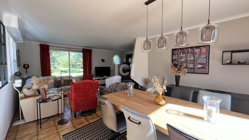 Cette maison de plus de 160 m², parfaitement entretenue, est une véritable perle rare sur le marché: Bénéficiez d'une organisation idéale avec deux chambres au rez-de-chaussée et une grande salle de bain, d'une très belle pièce de vie lumineuse grâce à sa triple exposition, d'une grande cuisine meublée et équipée, avec la possibilité de l'ouvrir entièrement sur le salon/séjour pour un espace de vie convivial et moderne.