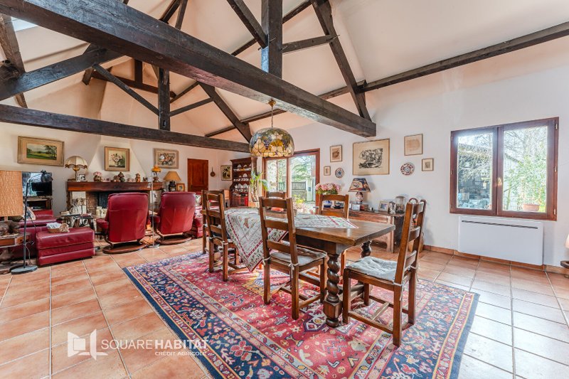 La maison se compose d'une entrée, d'un bureau, d'une vaste pièce de vie avec toit cathédrale, poutre apparente et cheminée en pierre. Un grande cuisine, un couloir distribuant une chambre parentale avec salle de bain et toilettes, un dressing, une chambre avec salle d'eau, toilettes séparés.