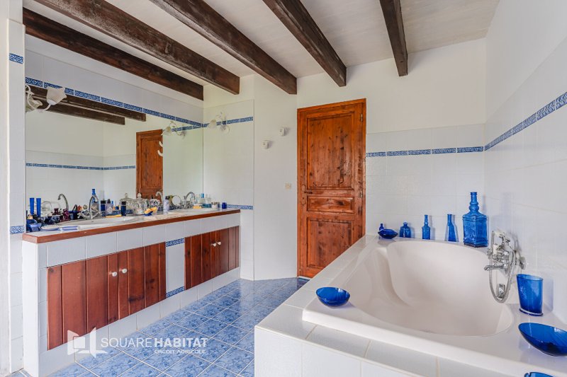 Édifiée avec des matériaux de qualité, cette bâtisse a su préserver toute l'authenticité de son architecture d'origine : pierre apparente, volumes généreux et atmosphère chaleureuse. Elle bénéficie par ailleurs d'une excellente isolation et d'une climatisation réversible, garantissant un confort thermique optimal en toute saison.